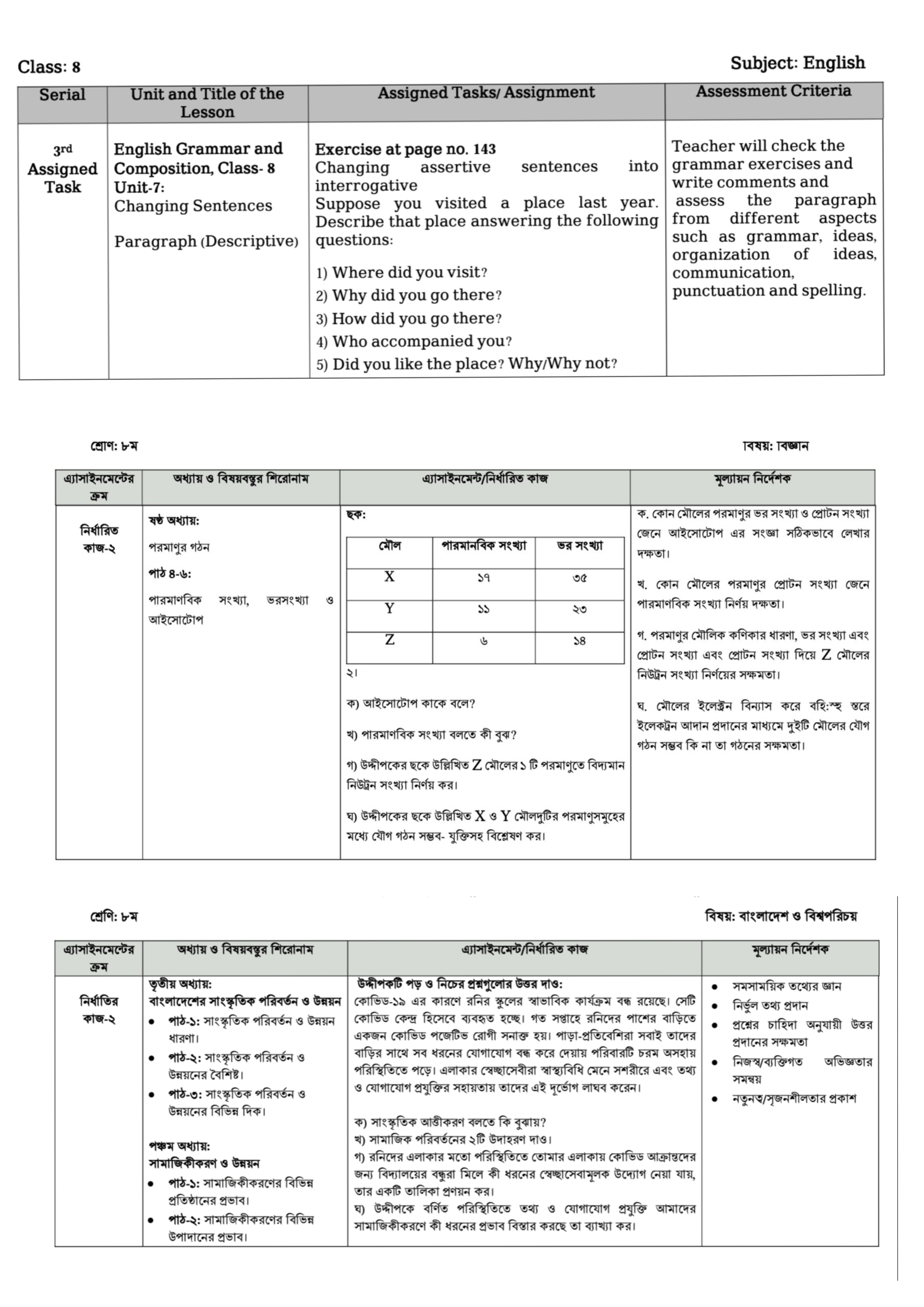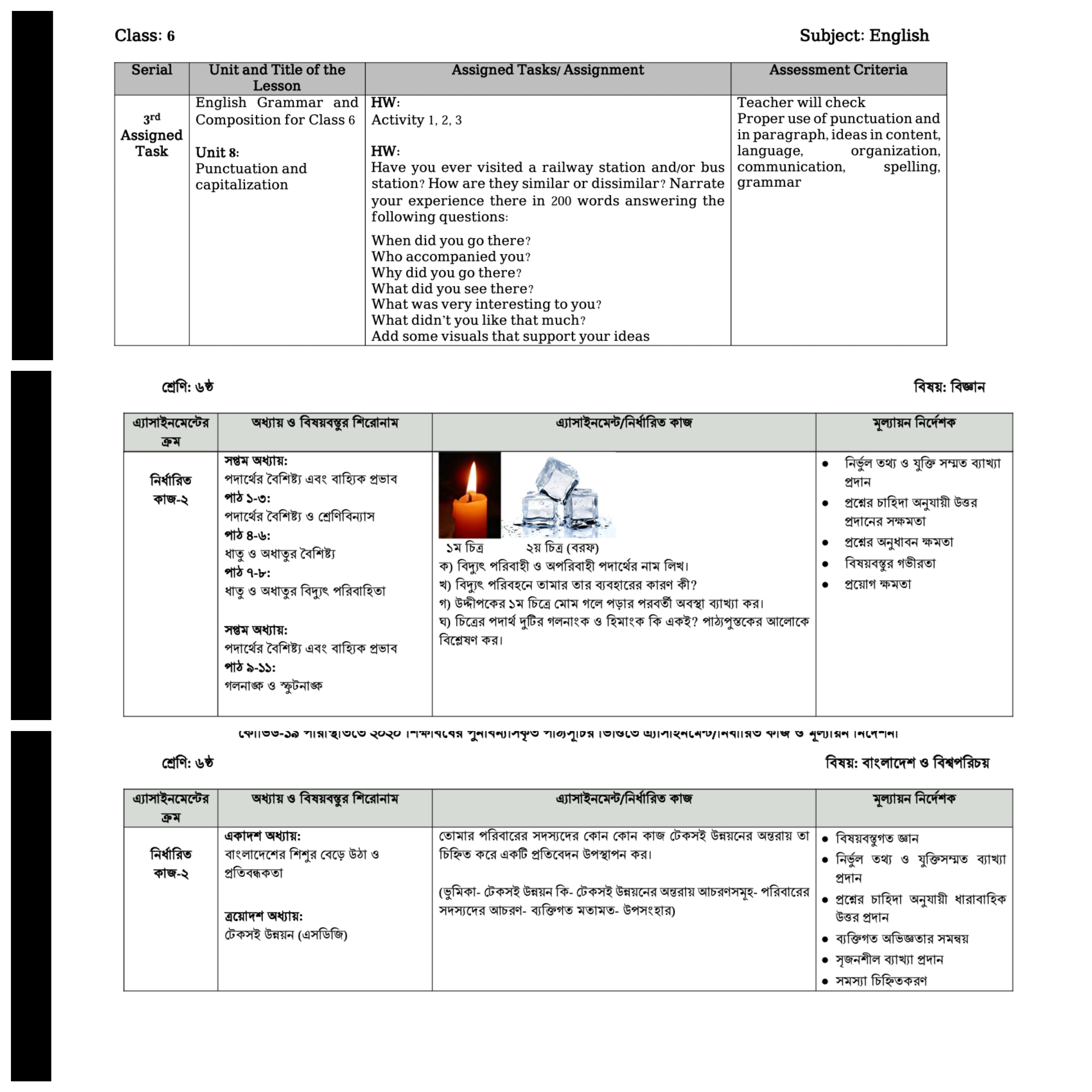 Assignment 4 for Class Six-Ten
