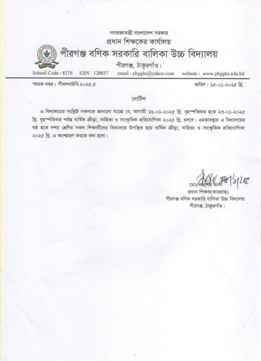 বার্ষিক ক্রীড়া ২০২৫ খ্রি. নোটিশ ।