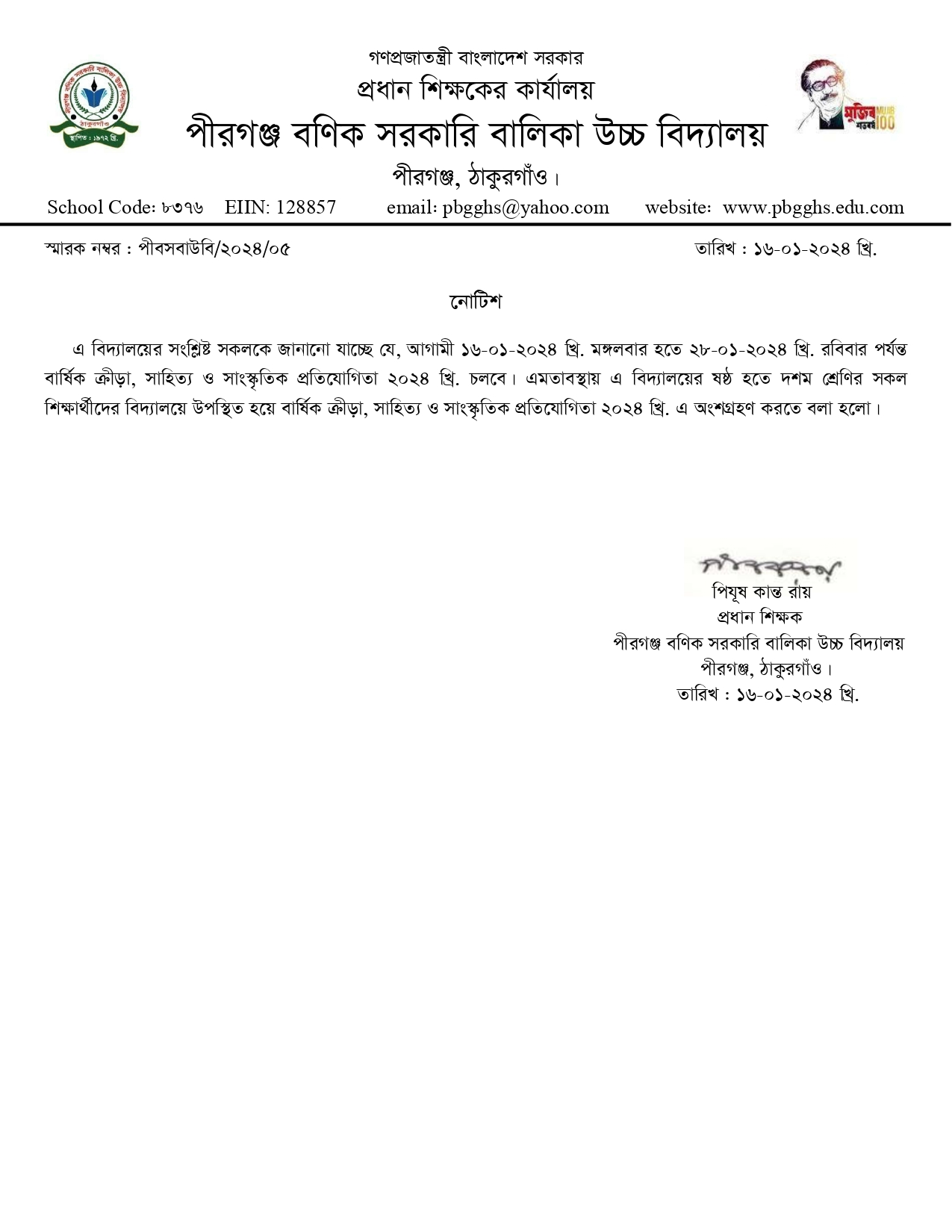 বার্ষিক ক্রীড়া নোটিশ