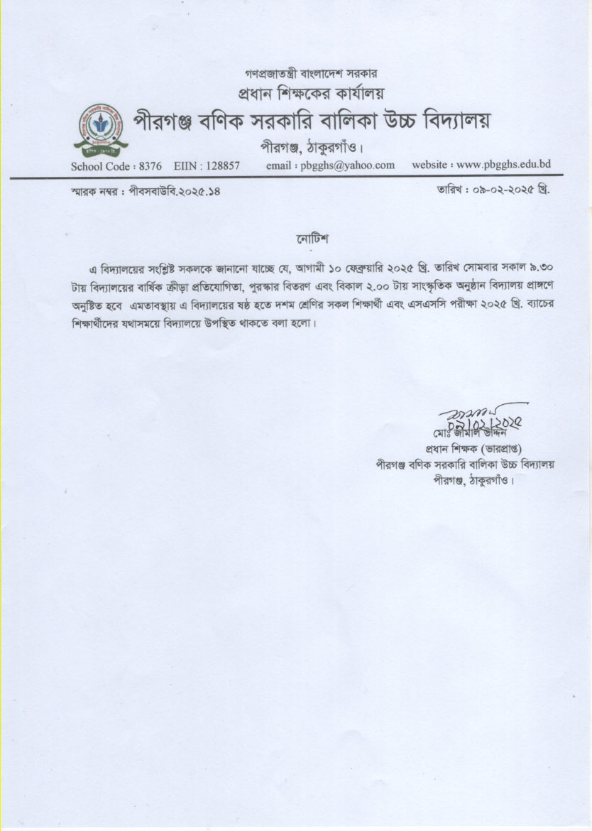 বার্ষিক ক্রীড়া প্রতিযোগিতা, পুরস্কার বিতরণ এবং সাংস্কৃতিক অনুষ্ঠান নোটিশ।