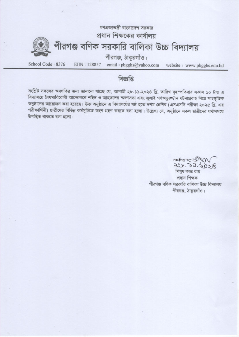 ভর্তি বিজ্ঞপ্তি -২০২০