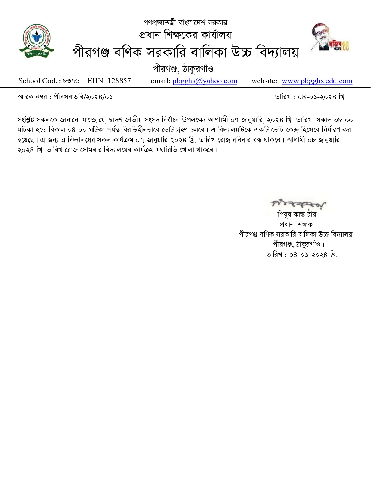 বিদ্যালয় বন্ধ নোটিশ
