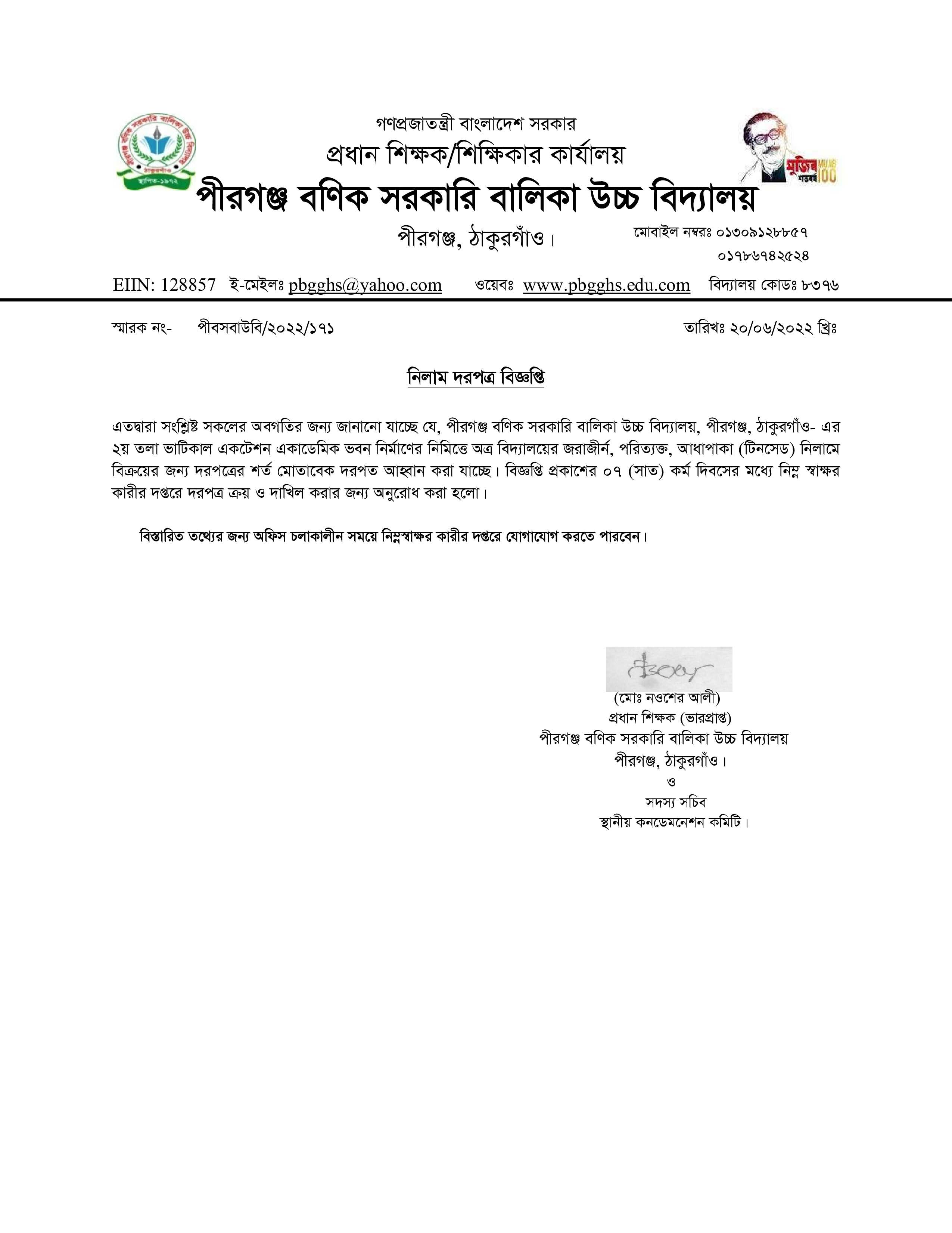 নিলাম দরপত্র বিজ্ঞপ্তি