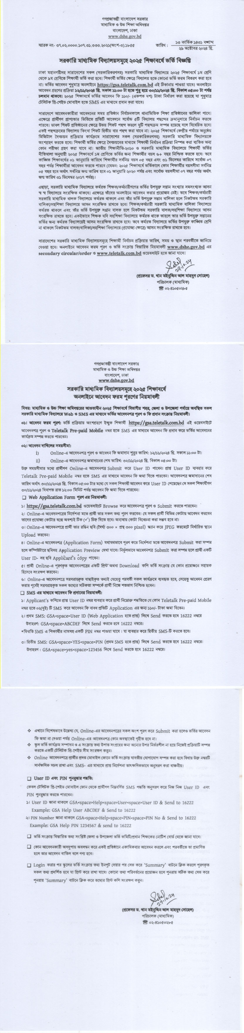 ভর্তি বিজ্ঞপ্তি -২০২০