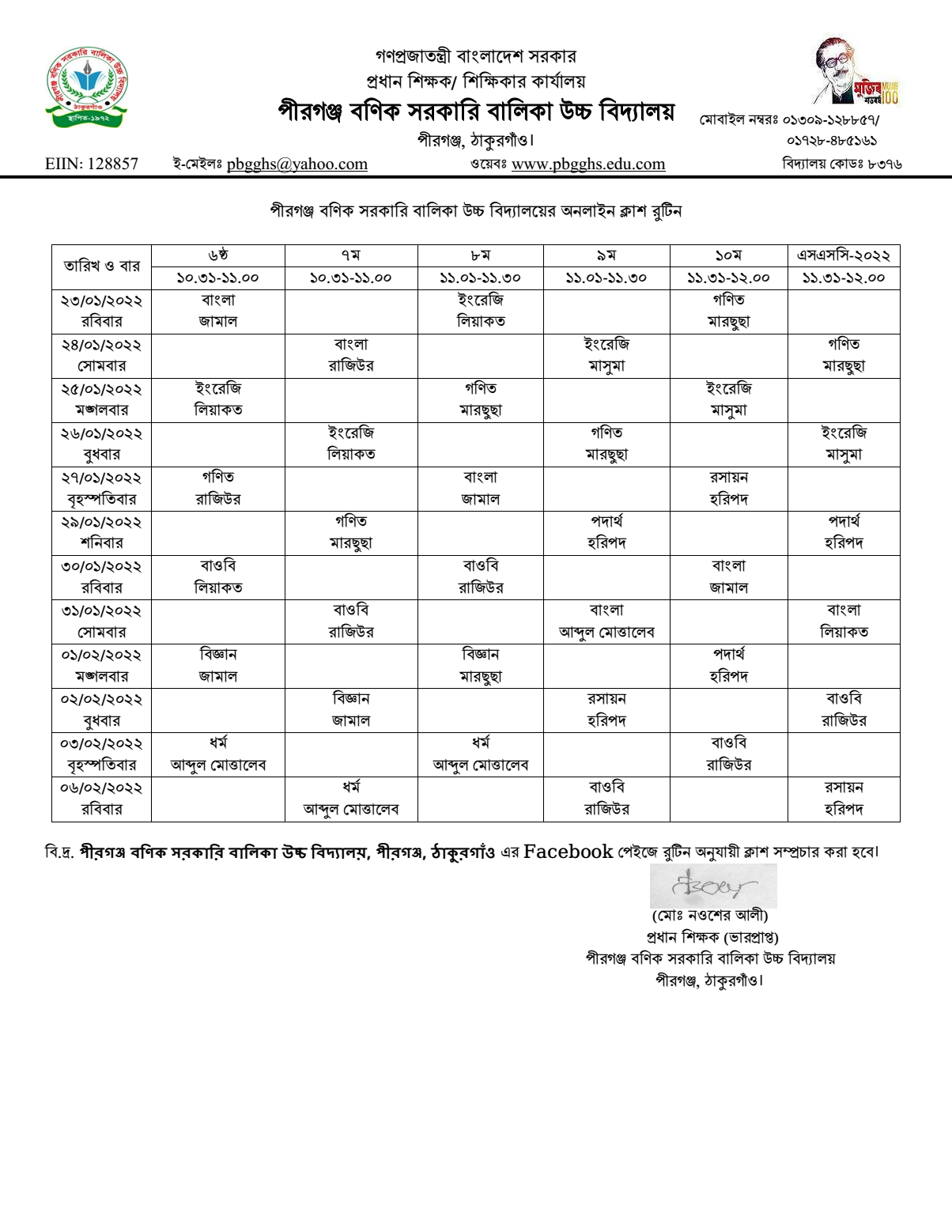 নবম শ্রেণির বার্ষিক সিলেবাস