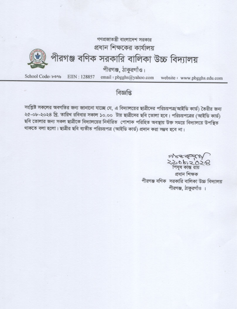 শিক্ষার্থীর আইডি কার্ড তৈরি প্রসঙ্গে নোটিশ।