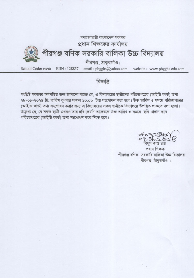 শিক্ষার্থীর আইডি কার্ড তথ্য সংশোধন প্রসঙ্গে নোটিশ।