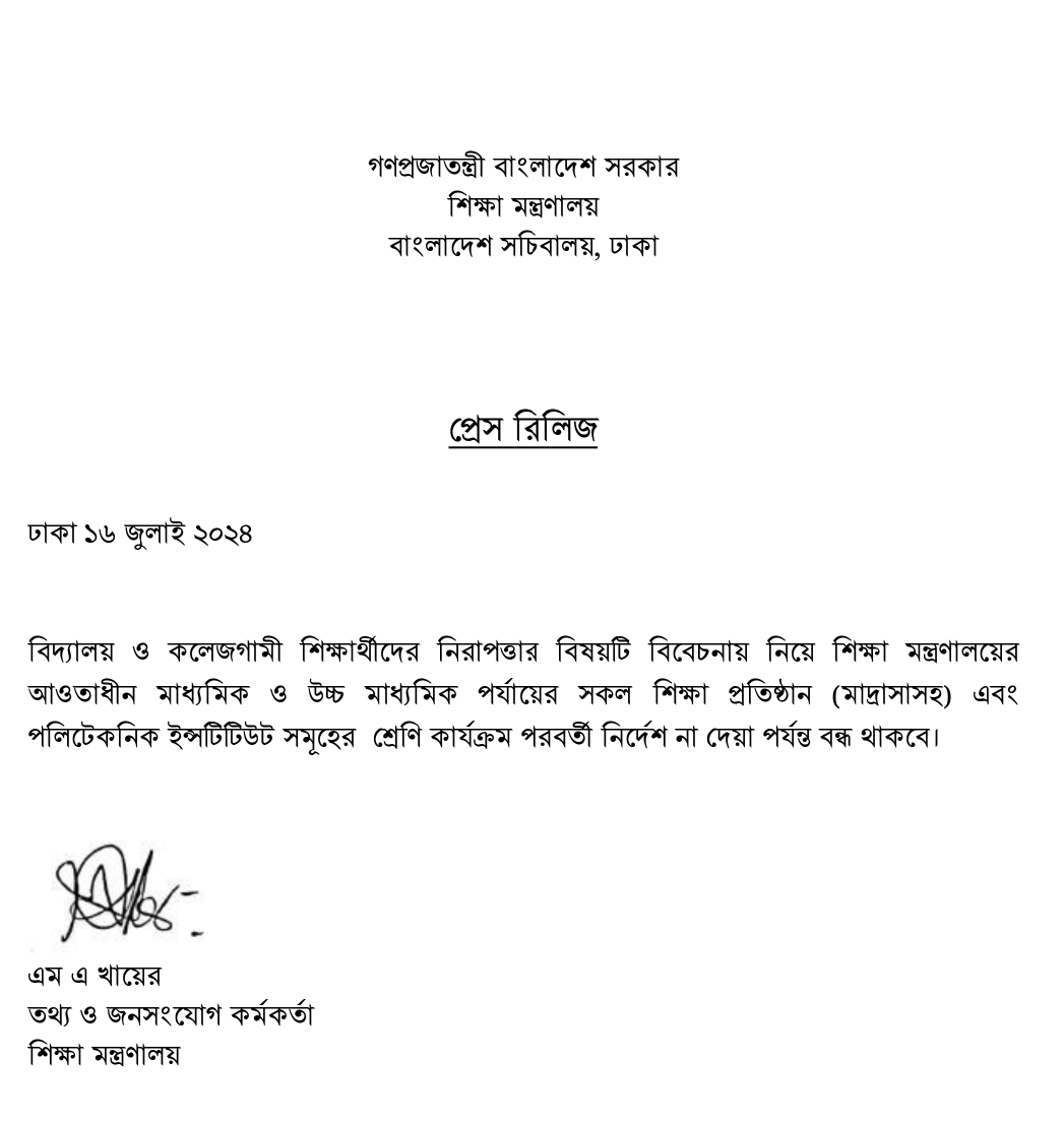 শ্রেণি কার্যক্রম বন্ধ রাখা বিষয়ক নোটিশ
